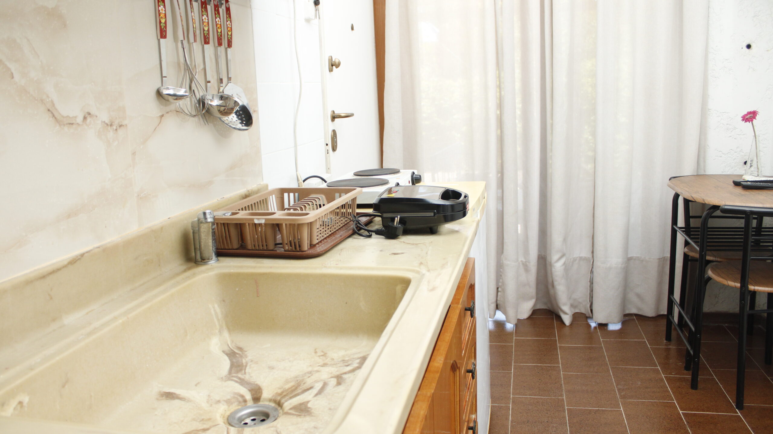 - πλήρως εξοπλησμένη κουζίνα με καφετιέρα, τοστιέρα, εστίες μαγειρέματος, κουζινικά σκεύη και τραπέζι φαγητού.